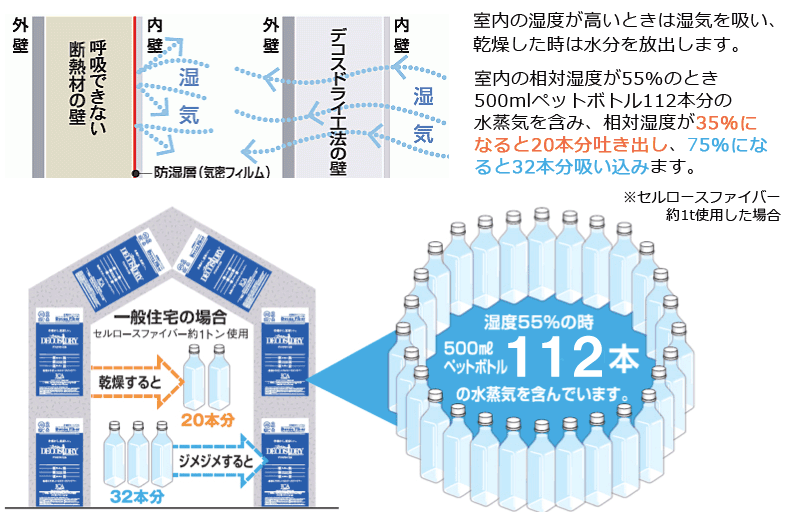 さらに、木質繊維がもつ吸放湿特性により年間を通じて適度な湿度を保つことが出来ます。
