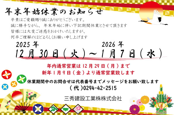 年末年始休業期間のお知らせ